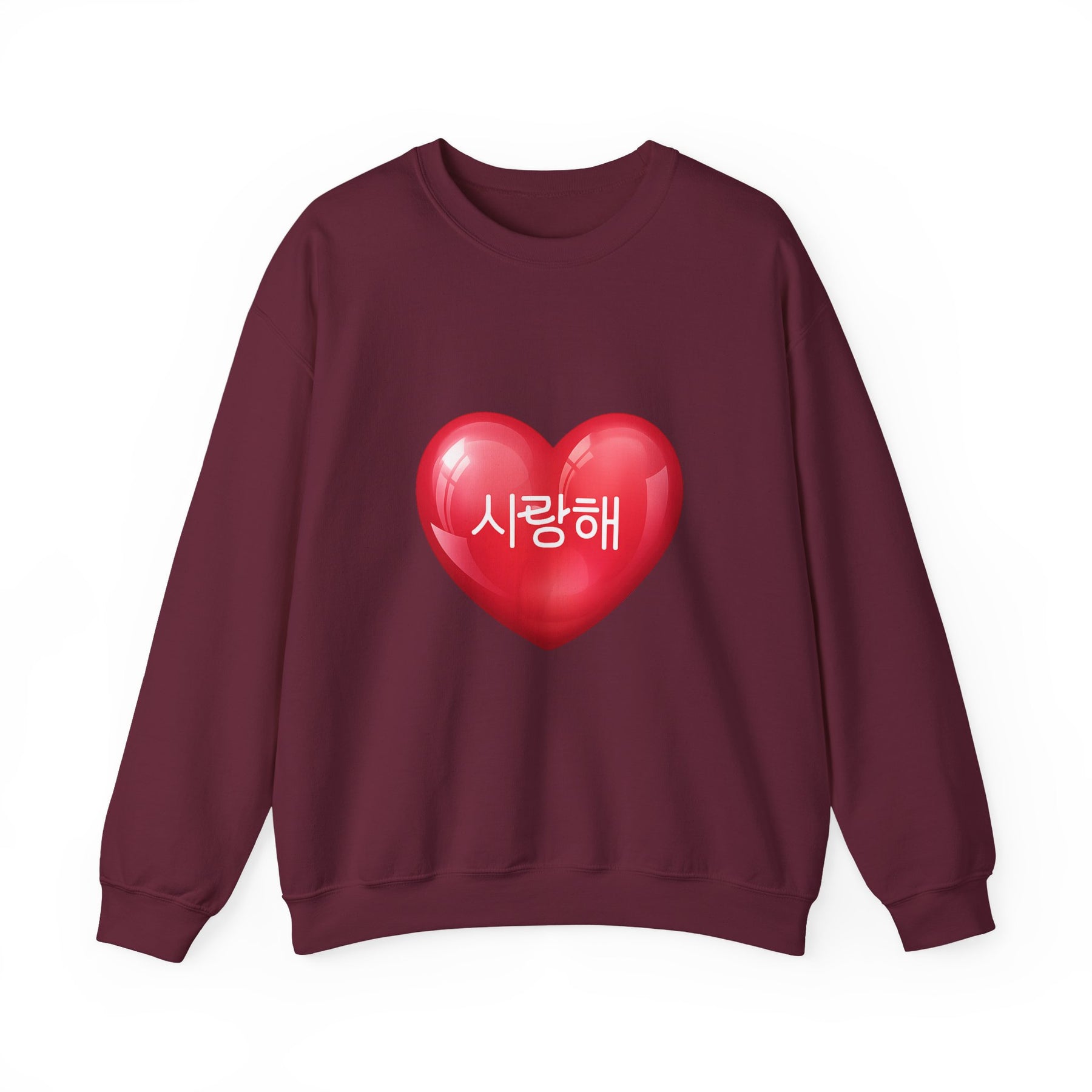 Ce pull je t'aime en coréen apporte une touche douce et pleine d’amour à ton look. Le cœur rouge accompagné de l’inscription 사랑해 (je t’aime) crée un style kawaii, tendre et tendance, parfait pour exprimer ses émotions avec simplicité.